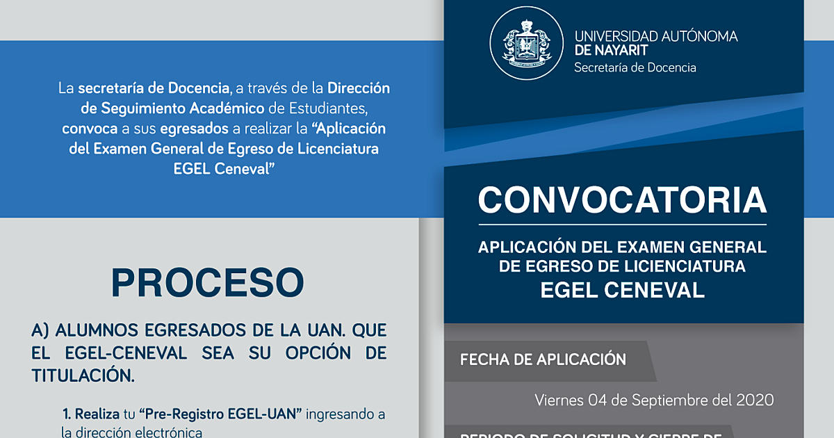 La secretaría de Docencia, a través de la Dirección de Seguimiento Académico de Estudiantes, convoca a sus egresados a realizar la “Aplicación del Examen General de Egreso de Licenciatura EGEL Ceneval”