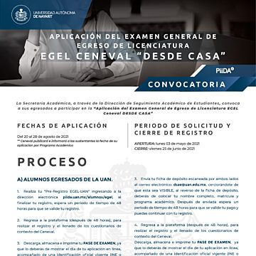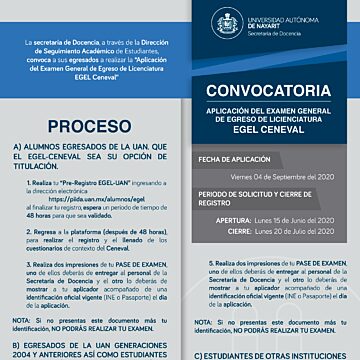 Egresados de la UAN generaciones 2004 y anteriores, así como estudiantes que aplicarán por segunda ocasión o más, que el EGEL-CENEVAL sea su opción de titulación.